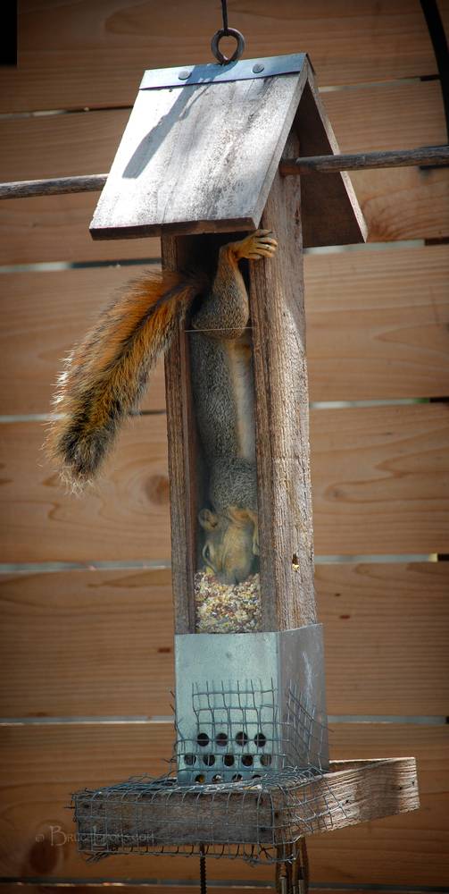Squirrel Crawling Inside Bird Feeder - Austin TX Wildlife in the City Squirrels are incredibly flexible and athletic contortionists, easily maneuvering and fitting through extremely small holes or openings.