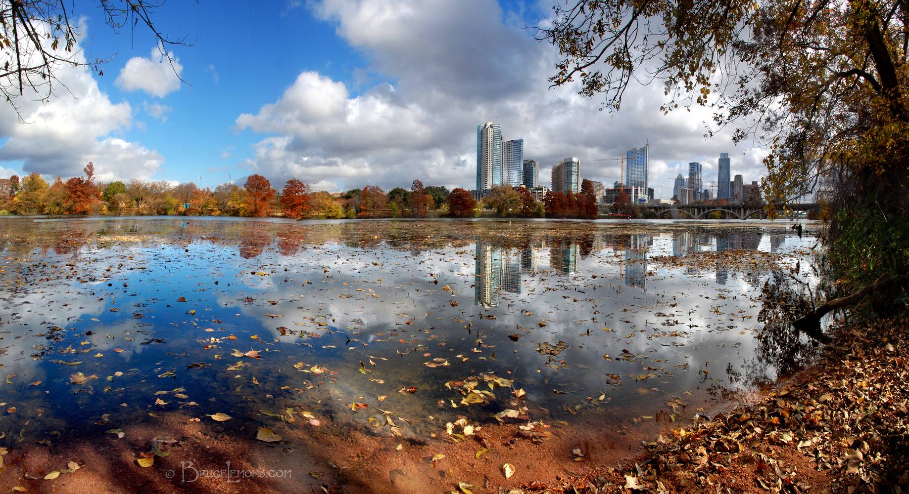Fall Color and the Downtown Skyline over Lady Bird Lake at Auditorium Shores 1 - Austin - Texas