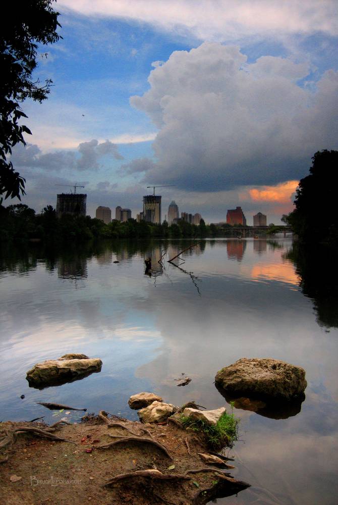 Downtown Skyline Sunrise from Lou Neff Point 2 - Lady Bird Lake - Austin -Texas.