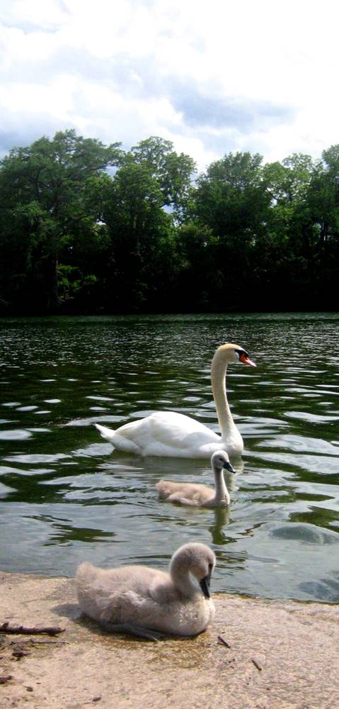 Swan and Babies on LadyBird Lake 3 - Austin - Texas Baby swans (cygnets) at a few weeks old.
