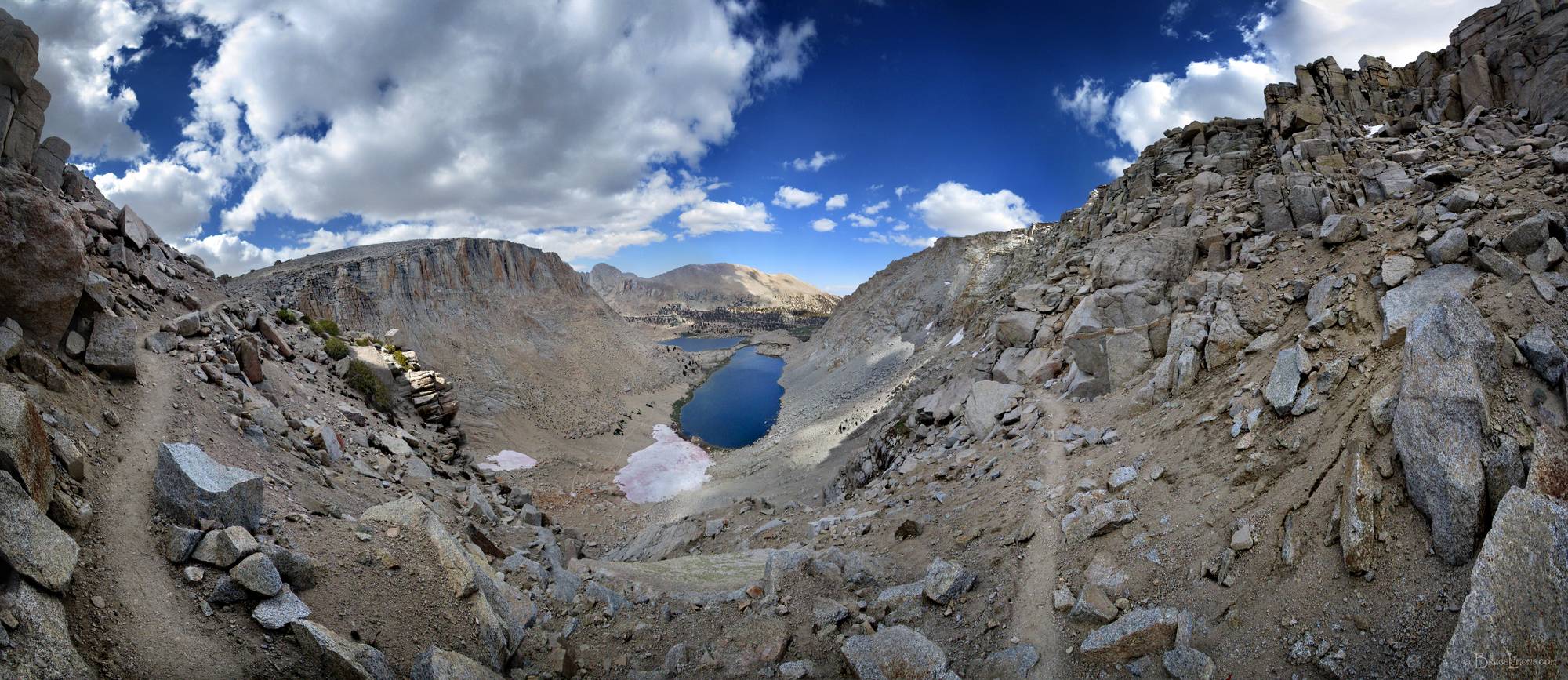 Old Army Pass Overlooking Cottonwood Lakes - Sierra Looking ENE from near the top of Old Army Pass out over Cottonwood Lakes. California, Sierra Nevada Mountains, Inyo National Forest. Off the John Muir Trail near Mile 202.