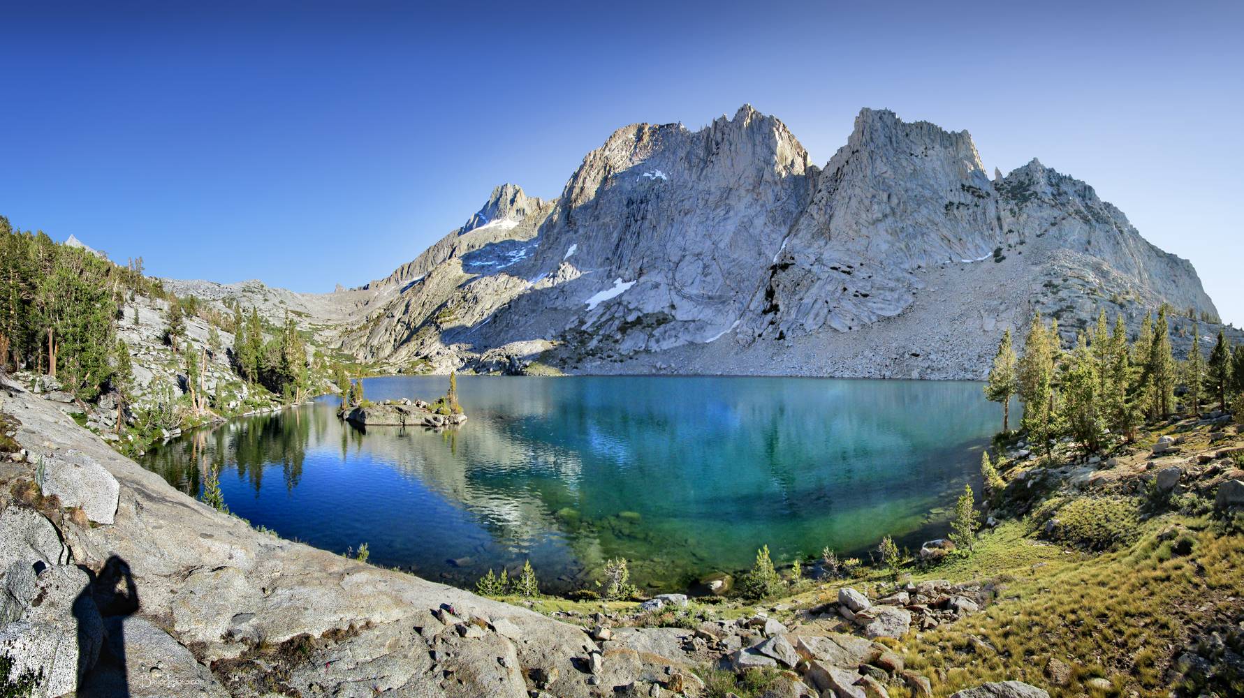 Gardiner Lake 10551 - Sierra Looking S across Gardiner Lake 10551. Off the John Muir Trail near Mile 176.