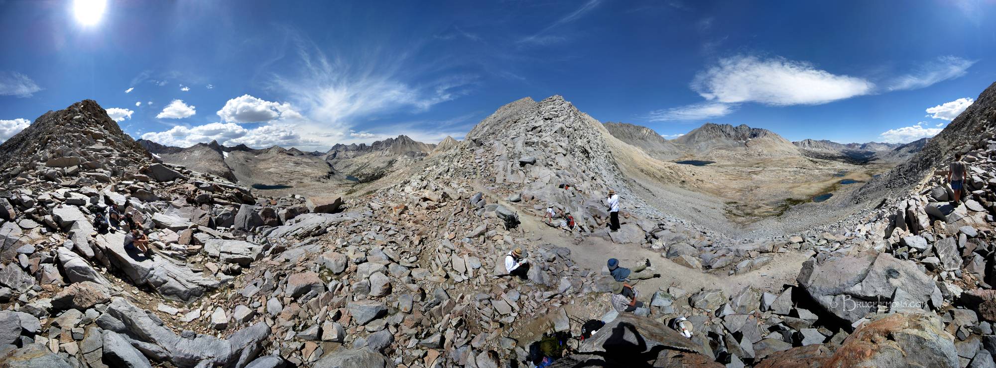 Hikers on Mather Pass Panorama - John Muir Trail