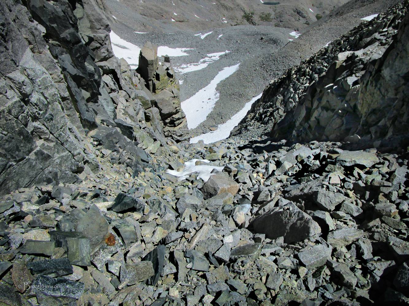 Looking NE down the east side of Lane Pass on the Sierra Crest between Ed Lane Peak and Birch Mtn. Off the John Muir Trail near Mile 153.