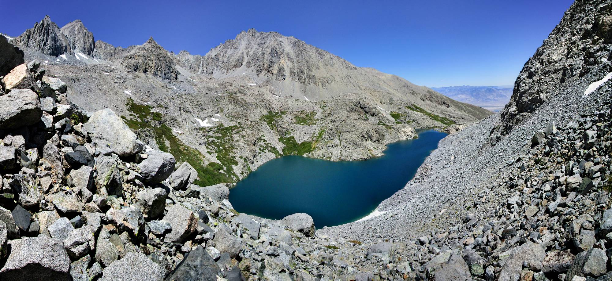 Birch Lake from Above- Sierra Looking N over Birch Lake from the W slope of Birch Mtn below Lane Pass. Off the John Muir Trail near Mile 153.