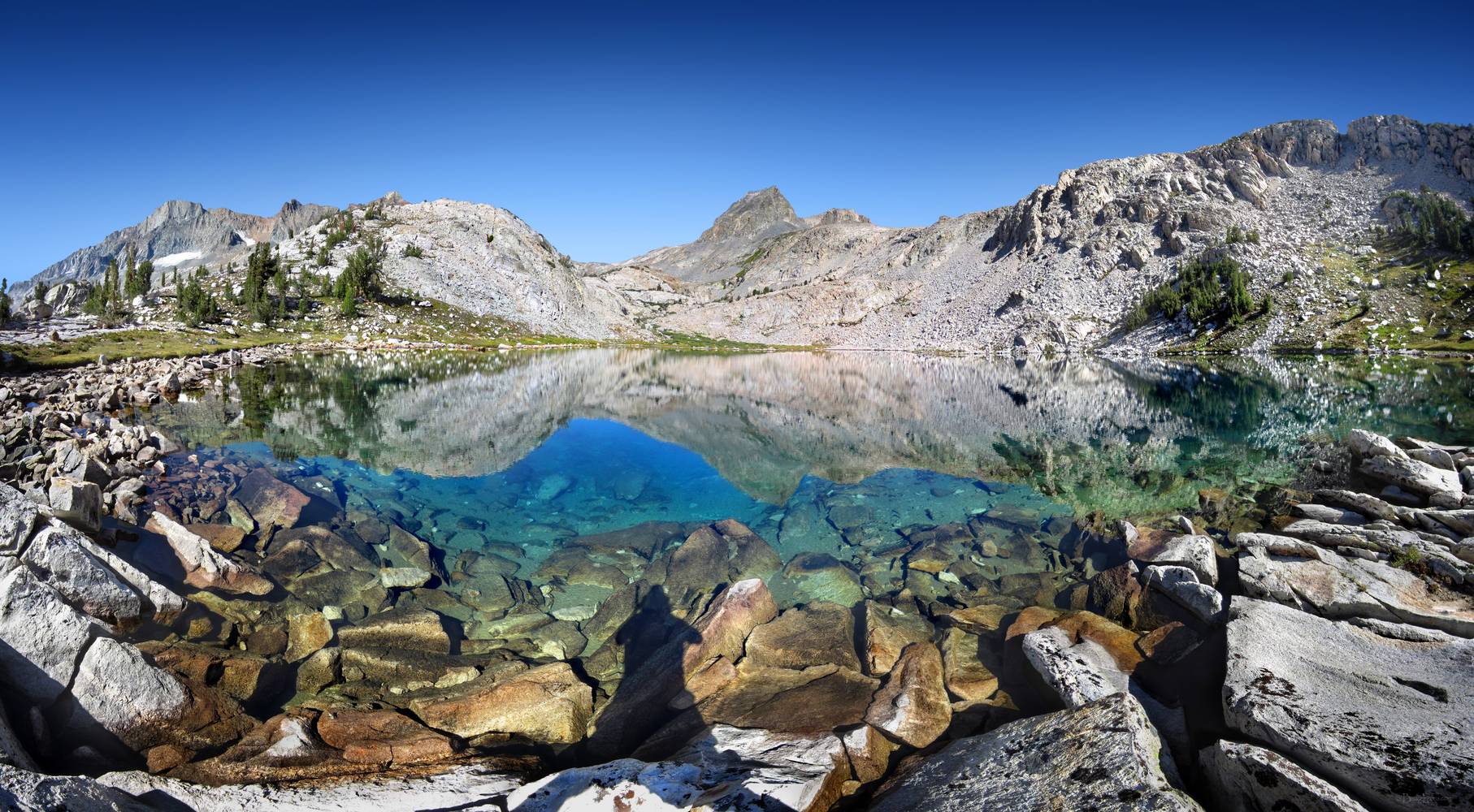 Frog Pond South of Muir Pass - Sierra Looking W across a pond full of Mountain Yellow Legged Frogs S of Muir Pass. California, Sierra Nevada Mountains, Kings Canyon National Park, Muir Pass. John Muir Trail Mile 132.