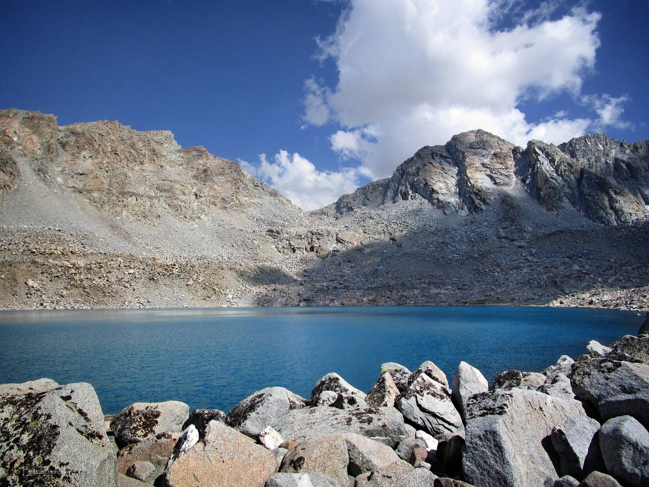 Alpine Col over Goethe Lake - Sierra Looking SW across Goethe Lake to Alpine Col. California, Sierra Nevada Mountains, John Muir Wilderness, Goethe Lake. Off the John Muir Trail near Mile 110.
