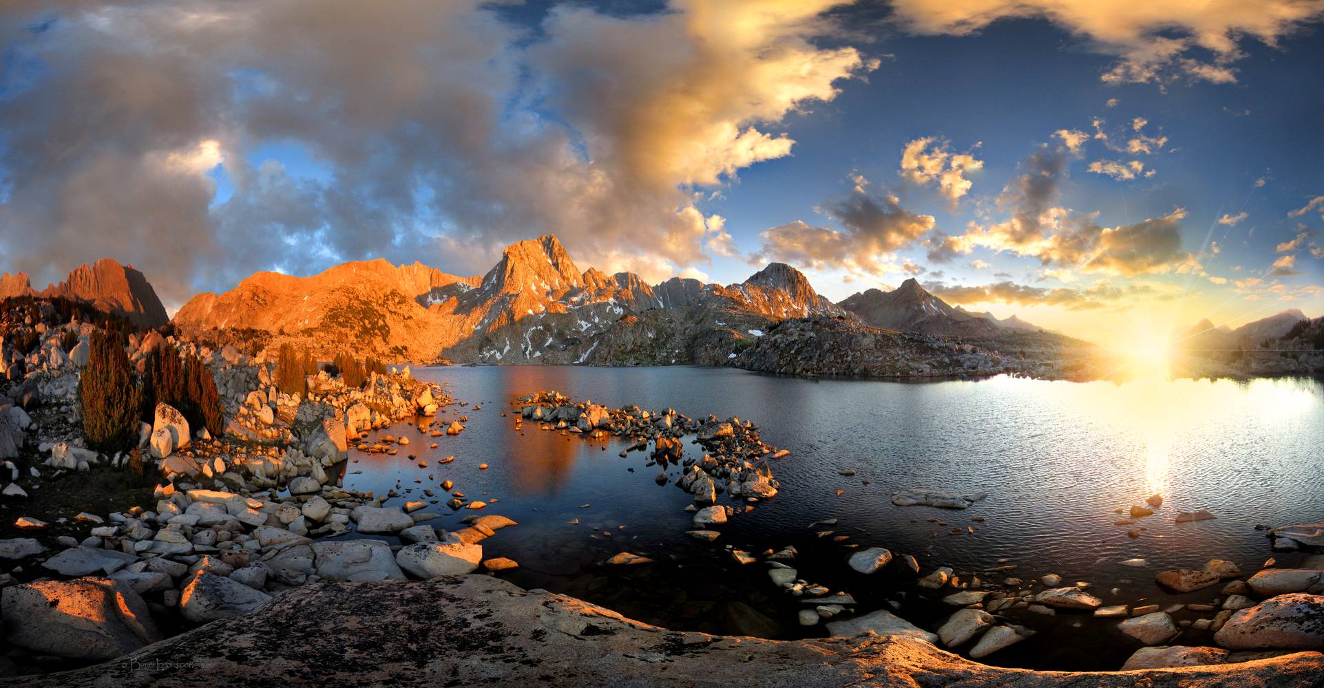 Murieal Lake Sunset 3 - Sierra Photo painting. Sunset over Muriel Lake near Piute Pass. California, Sierra Nevada Mountains, John Muir Wilderness, Muriel Lake. Off the John Muir Trail near Mile 110.