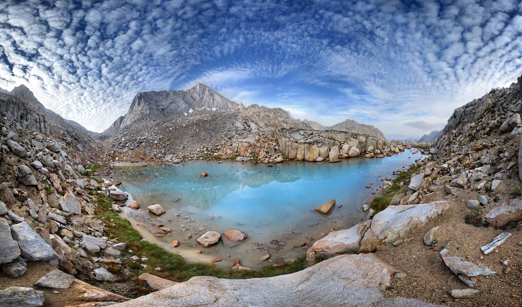 Tarn NE below Gabbot Pass and above Upper Mills Creek Lake. California, Sierra Nevada Mountains, Kings Canyon National Park, Gabbot Pass. Off the John Muir Trail near Mile 096.
