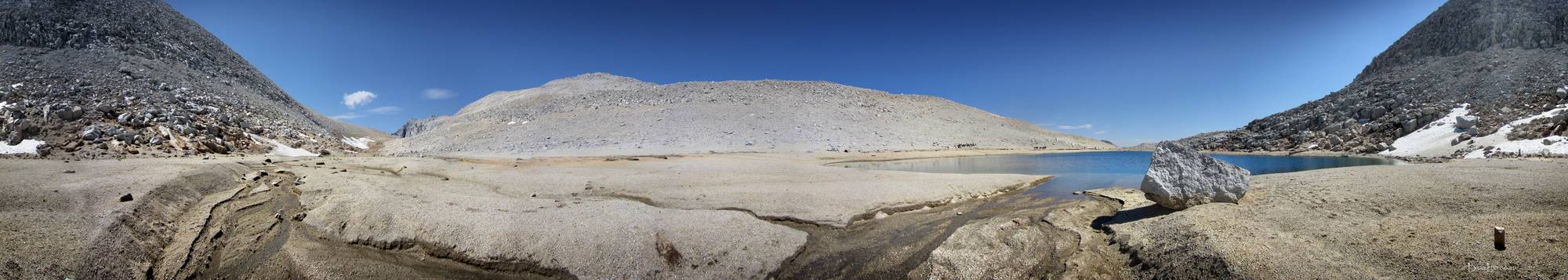Mono Pass - Sierra Pack trains moving by the lake and across the desolate flat top of Mono Pass. California, Sierra Nevada Mountains, John Muir Wilderness, Mono Pass. Off the John Muir Trail near Mile 187.