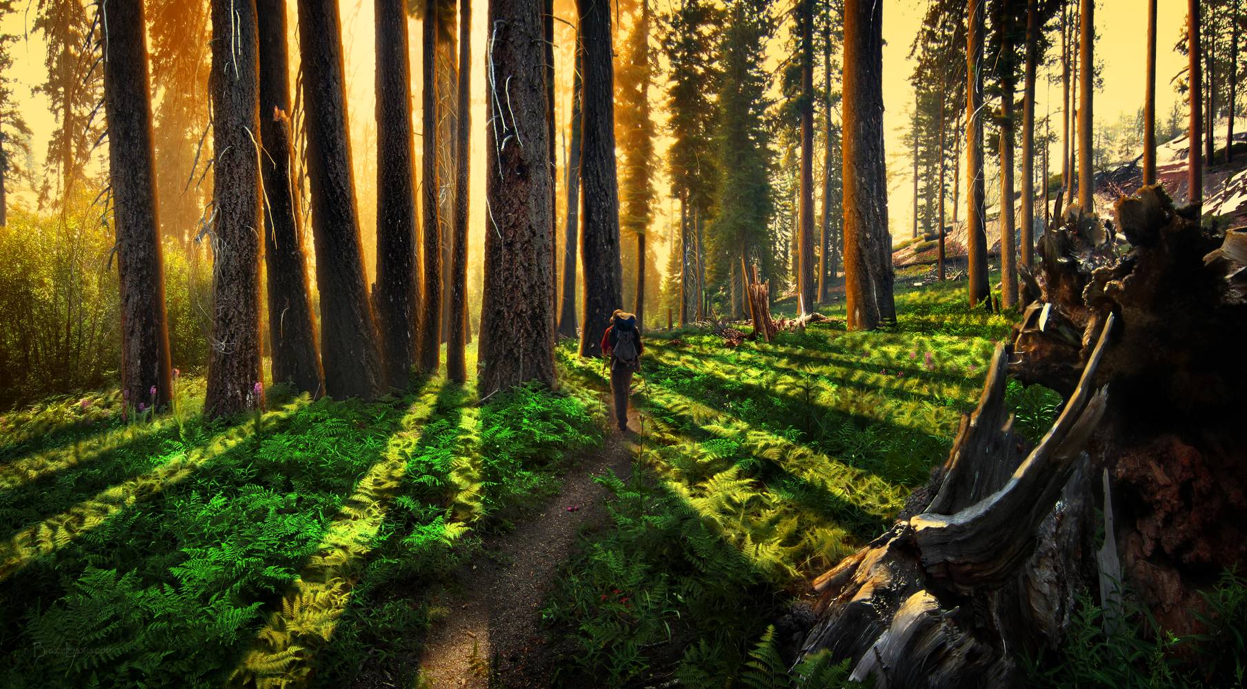 Photo painting. First mile of the Fish Creek Trail out of the Reds Meadow, Devils Postpile area. California, Sierra Nevada Mountains, Ansel Adams Wilderness, Fish Creek. Off the John Muir Trail near Mile 060.