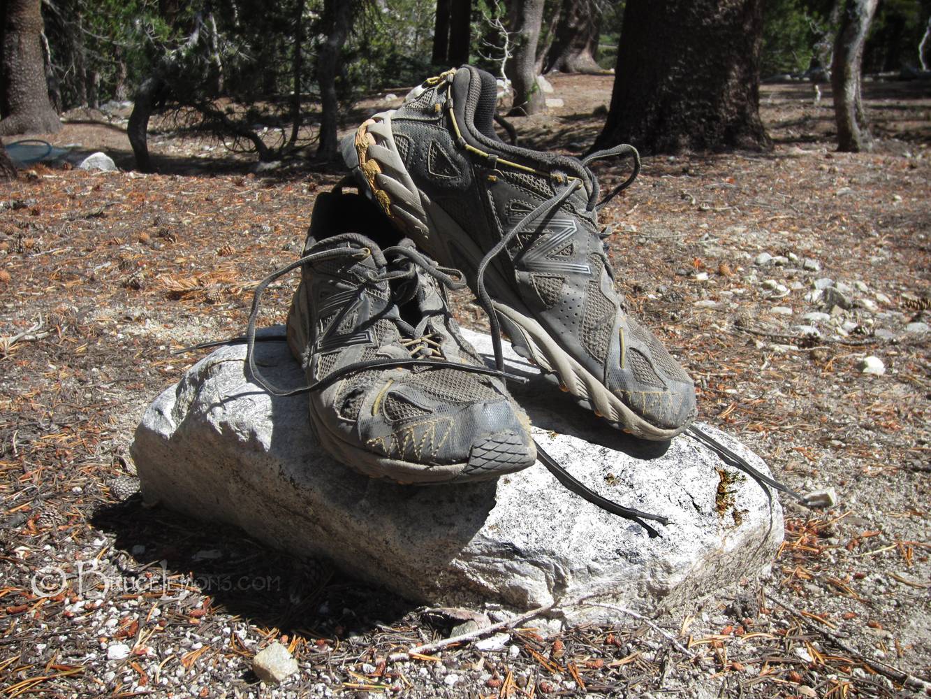 Hiking Shoes Post Hike - Sierra Hiking shoes after several hundred miles of trails. California, Sierra Nevada Mountains, Mammoth Lakes. Off the John Muir Trail near Mile 060.