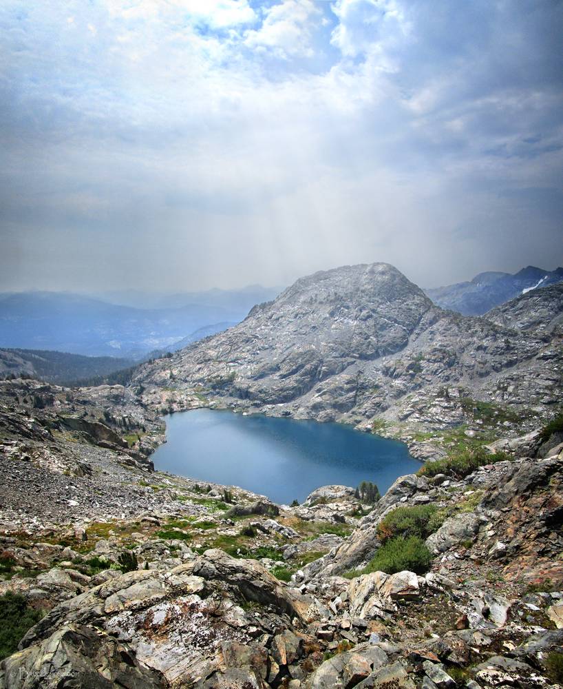 Lower Beck Lake - Sierra Looking S down on Lower Beck Lake below the Minarets. California, Sierra Nevada Mountains, Ansel Adams Wilderness, Beck Lakes. Off the John Muir Trail near Mile 077.
