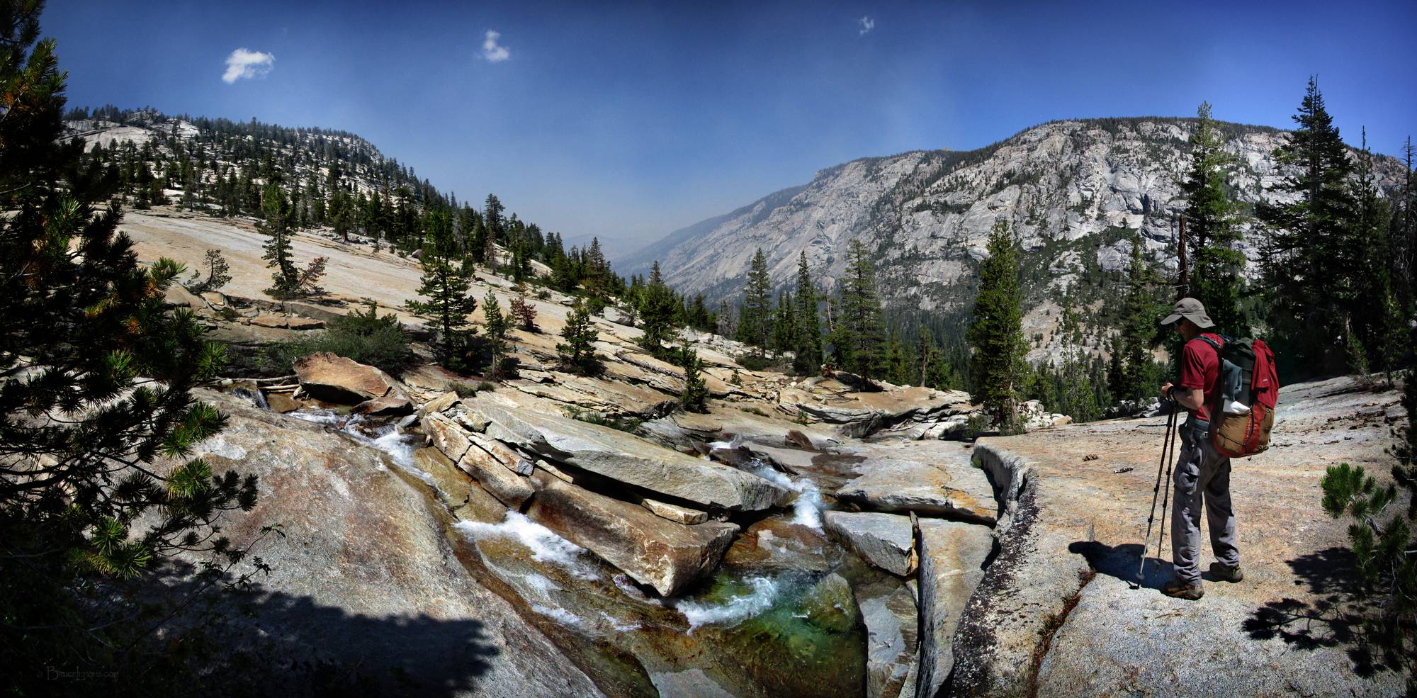 Red peak Fork - Yosemite Looking NW on the lower end of the Red Peak Fork between Red Devil lake and Washburn Lake. California, Sierra Nevada Mountains, Yosemite, Red Peak Fork. Off the John Muir Trail near Mile 000.