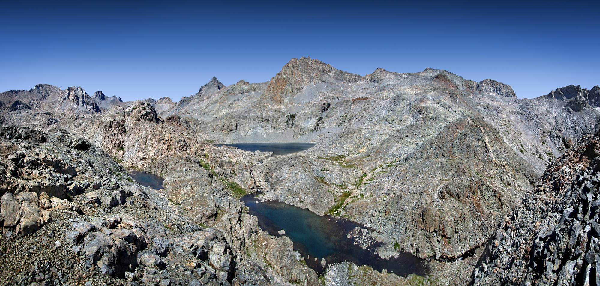 Lyell Fork Basin Lake 10999 - Yosemite Upper Lyell Fork Basin Lake 10999 at center back and Electra Peak at right. California, Sierra Nevada Mountains, Yosemite, Lake 10999. Off the John Muir Trail near Mile 026.