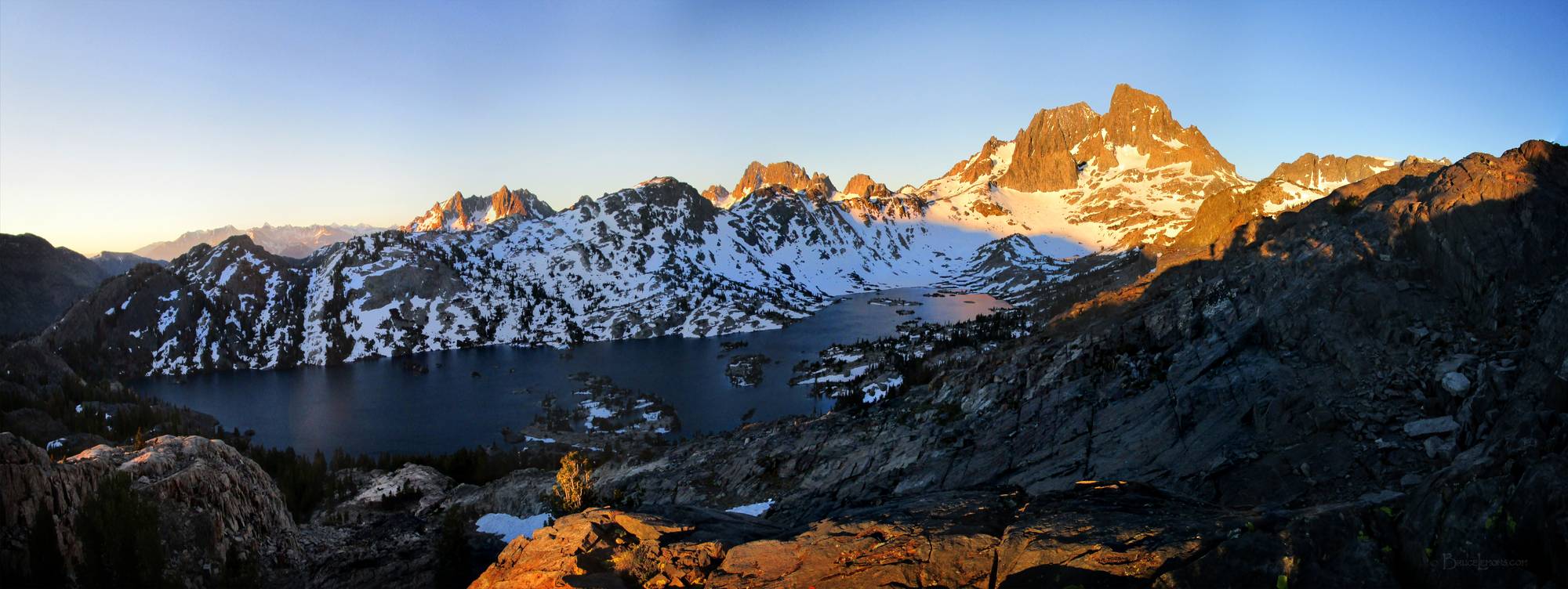 Sunrise on Banner Peak over Garnet Lake from High Up - Sierra Nevada Mountains
