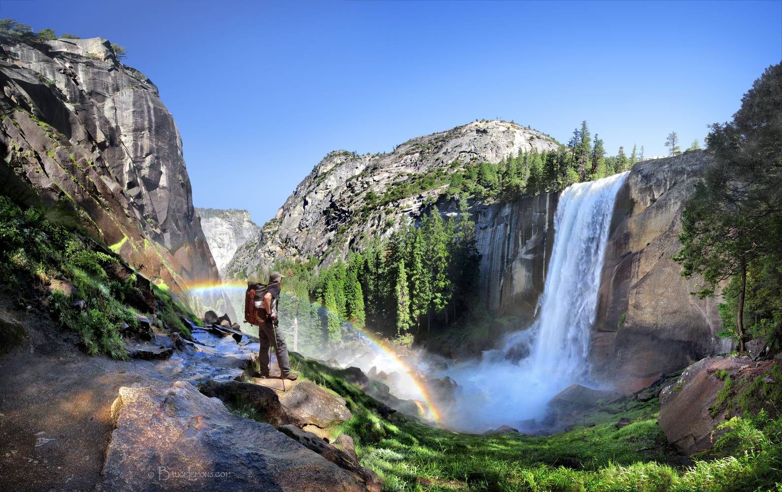 Vernal Fall Hiker and Rainbow - Yosemite