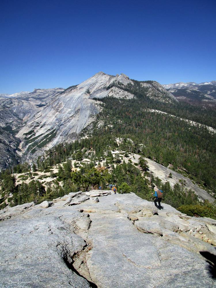 Sub Dome trail down from Half Dome - Yosemite Descending the Sub Dome Trail from Half Dome. Clouds Rest at center horizon. California, Sierra Nevada Mountains, Yosemite, Yosemite Valley, Half Dome. Off the John Muir Trail near Mile 006.
