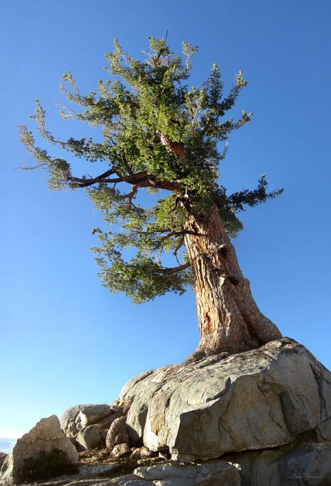 Jeffrey Pine Tree - Yosemite Stunted Jeffrey Pine tree growing out of the rocks on North Dome. California, Sierra Nevada Mountains, Yosemite, Yosemite Valley, North Dome. Off the John Muir Trail near Mile 000.