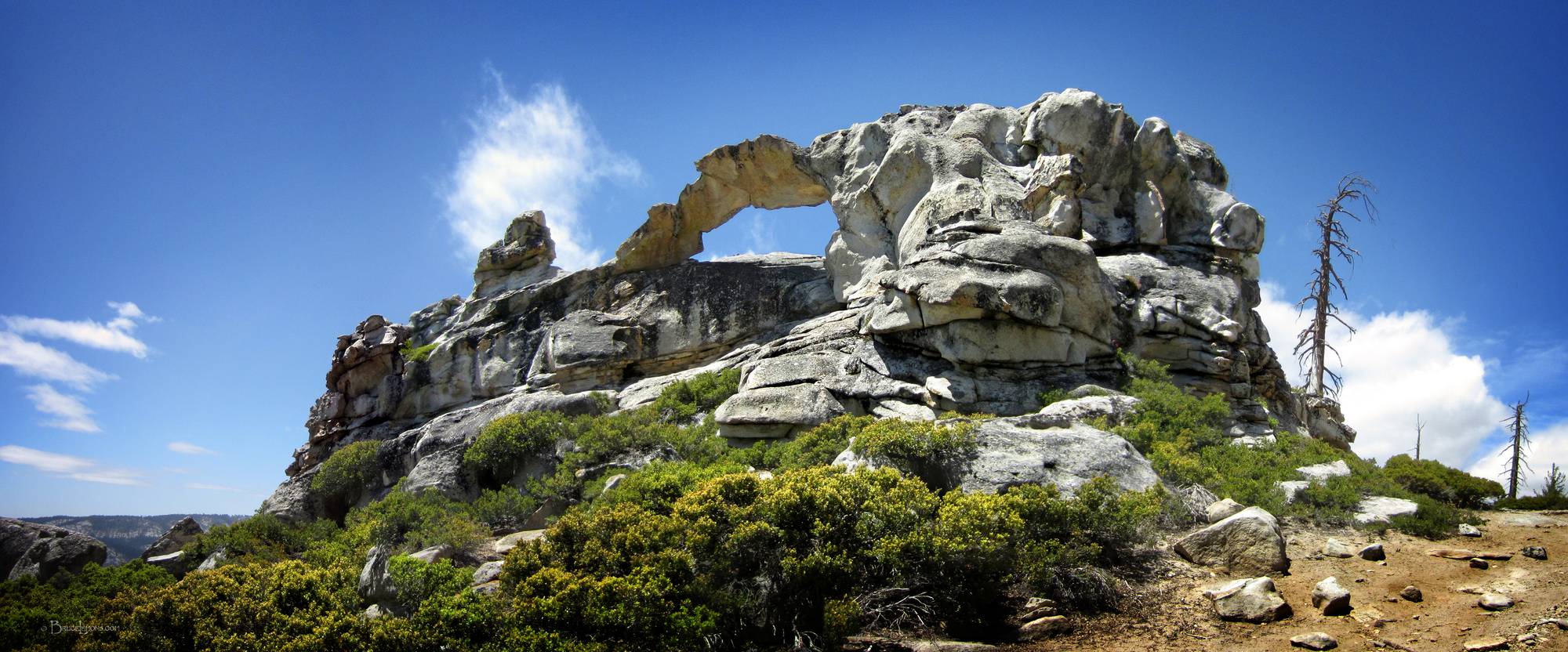 Natural Arch - Yosemite Looking N at the Natural Arch 2 miles N of North Dome. California, Sierra Nevada Mountains, Yosemite, Natural Arch. Off the John Muir Trail near Mile 000.