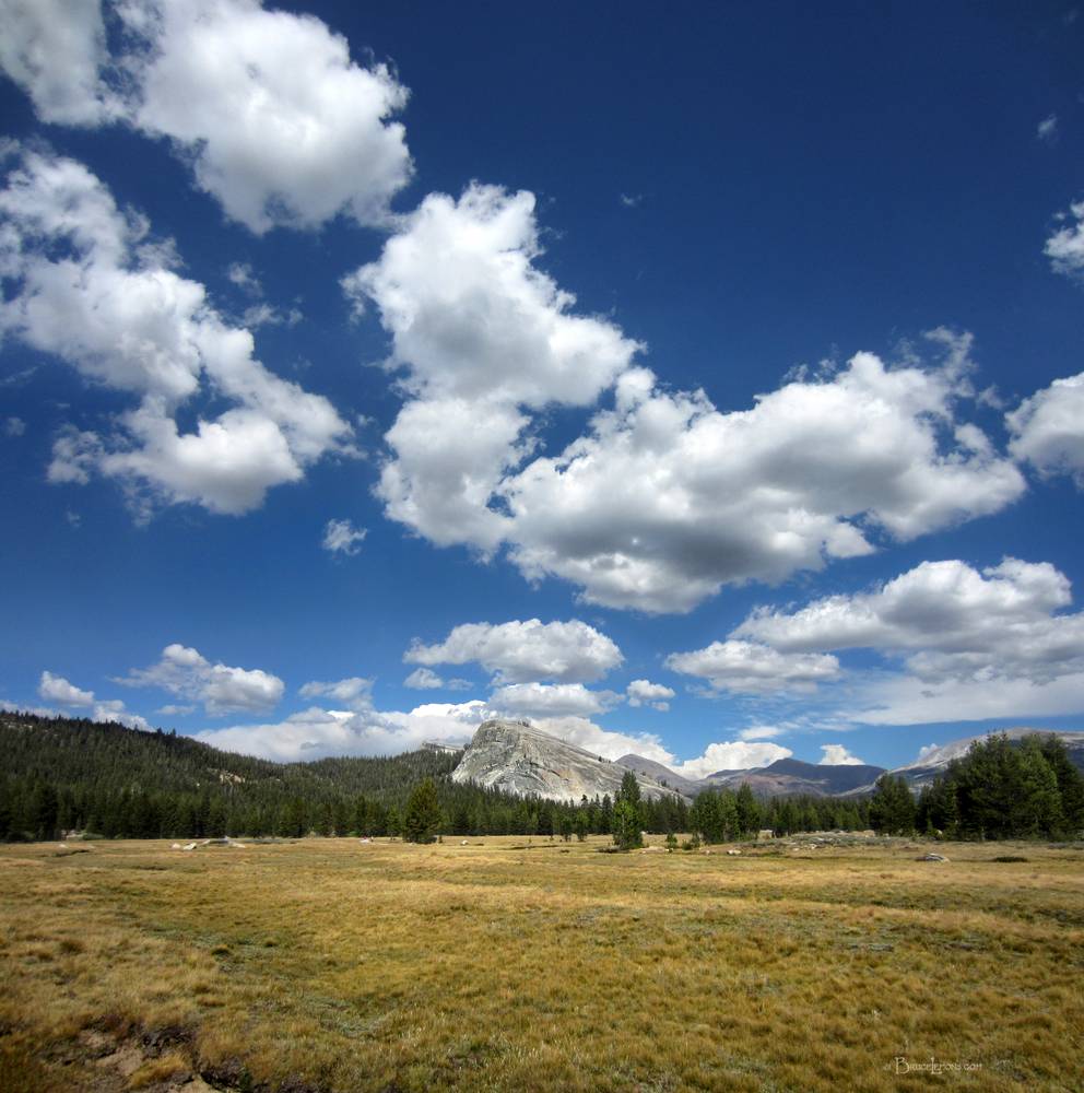 Lembert Dome over Tuolumne Meadow - John Muir Trail Looking ENE across Tuolumne Meadow to Lembert Dome. California, Sierra Nevada Mountains, Yosemite National Park, Tuolumne Meadows. John Muir Trail Mile 023.