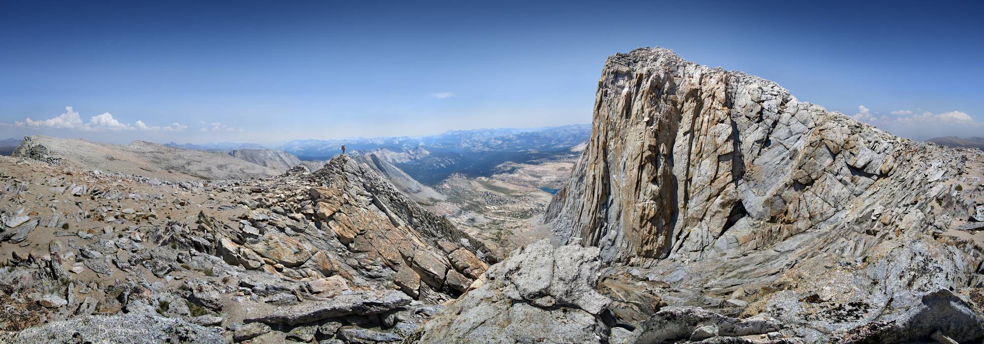 Hiker Beneath the Summit of Mt Conness - Yosemite South down ridge beneath the summit of Mt Conness. California, Sierra Nevada Mountains, Yosemite, Mt Conness. Off the John Muir Trail near Mile 023.