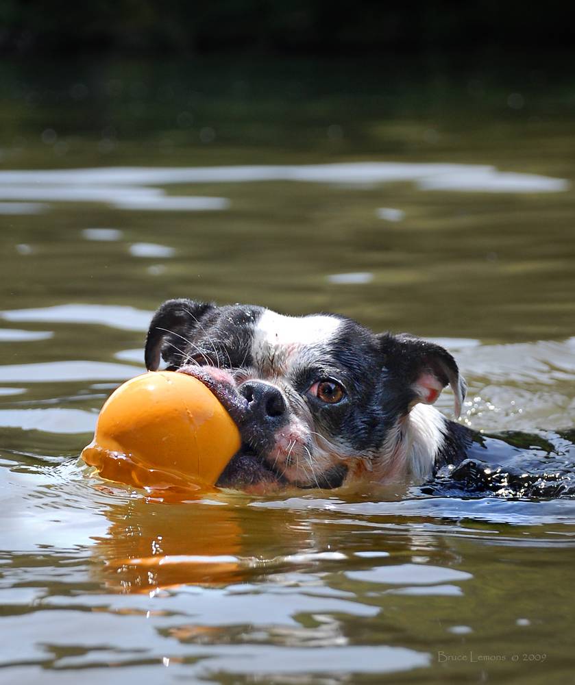 Dog Swimming With Yellow Ball