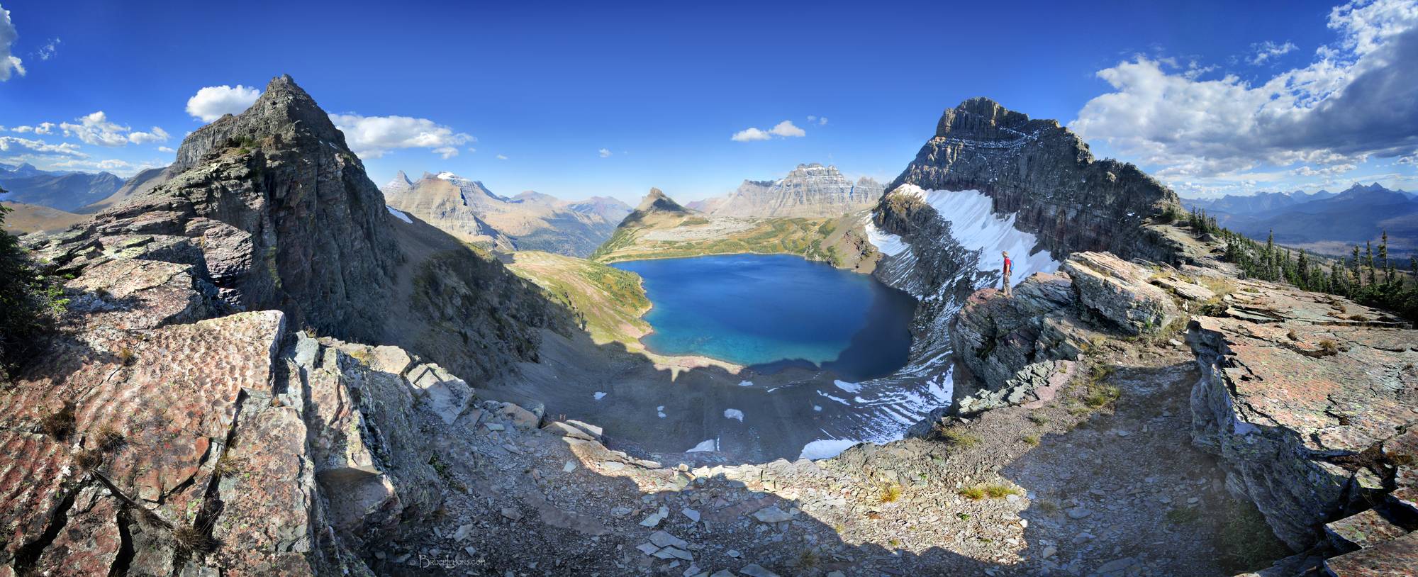 Sue Lake Overlook - Glacier National Park Sue Lake overlook below Mt Kipp at right, on a short spur trail off the Continental Divide / Highline Trail near Fifty Mountain. Glacier National park, Montana.... Glacier National Park, Montana.