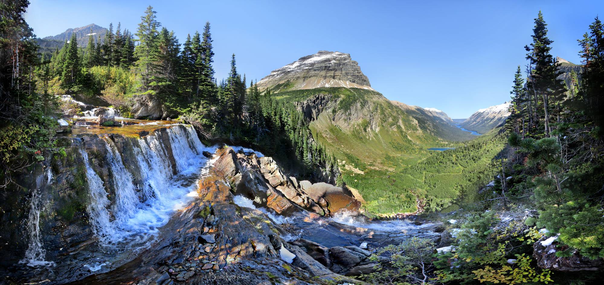 Paiota Falls - Glacier National Park Paiota Falls just off trail a few miles South of Stoney Indian Pass. Atsina Lake visible just below, and Glenns Lake at valley bottom. Montana...Glacier National Park, Montana.
