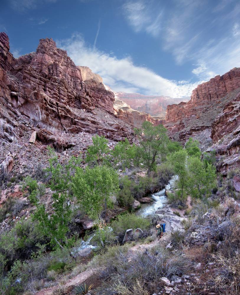 Tapeats Creek - Grand Canyon Looking NNE up Tapeats Creek about 10 miles from the Bill Hall trailhead, on the way to the Colorado River. Arizona, Grand Canyon National Park, North Rim, Bill Hall Trail, Tapeats Creek.