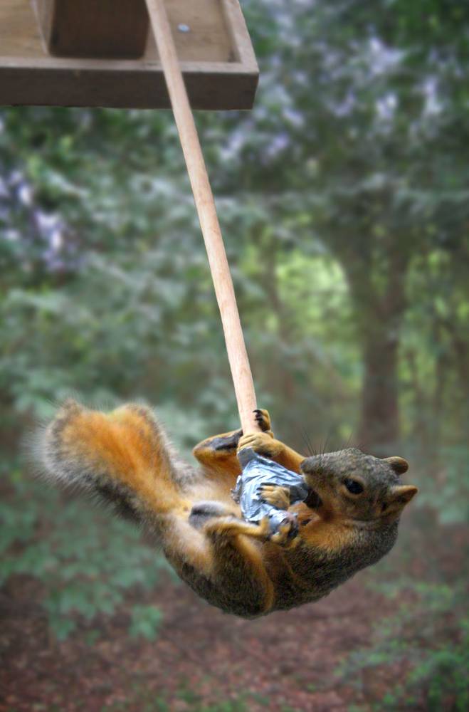 Squrrel Retrieving a Nut from Feeder - Austin TX Wildlife in the City