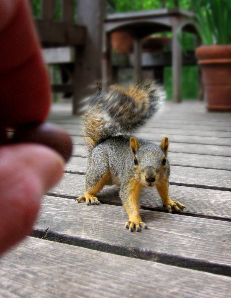 Squirrel Retrieving a Nut from Hand - Austin TX Wildlife in the City