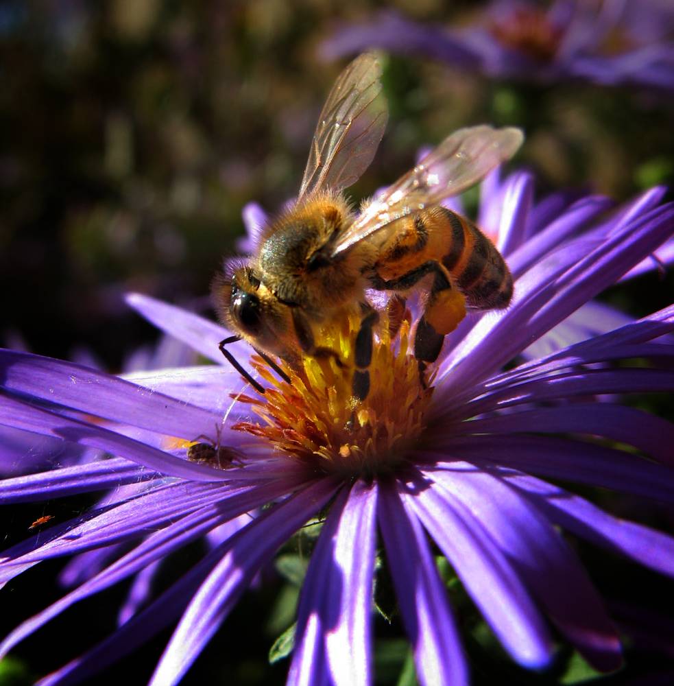 Bee on Purple Aster Flower - Austin - Texas