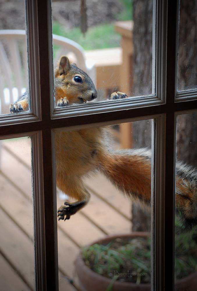 Squirrel Begging for Food at the Window 3 - Austin TX Wildlife in the City