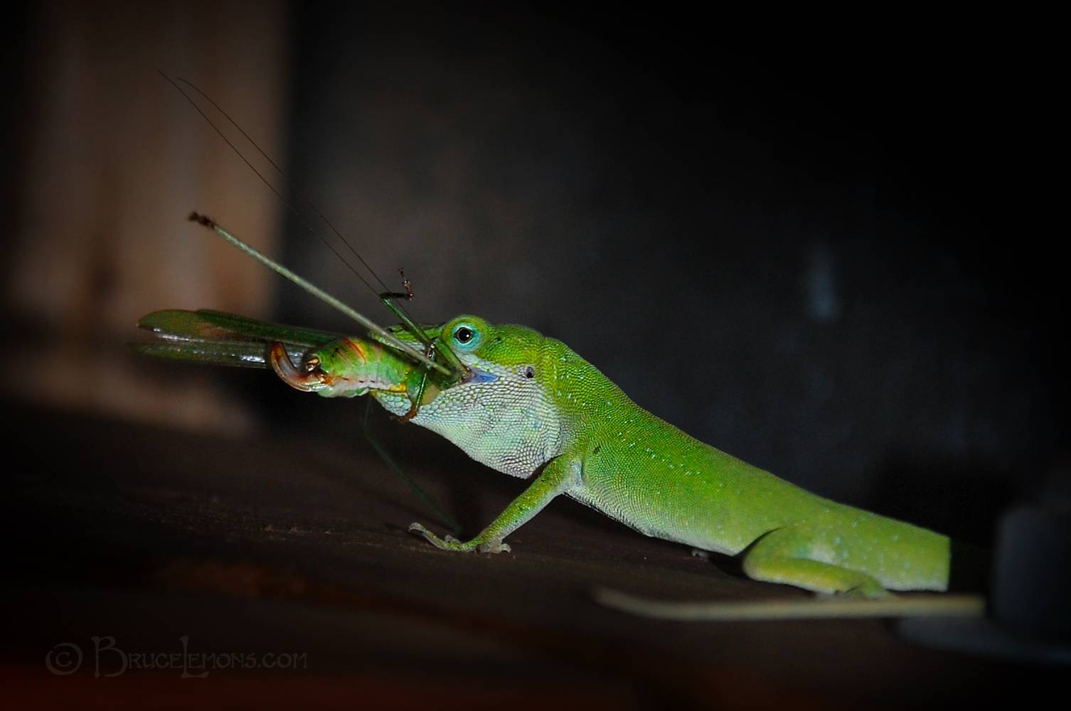 Green Anole Lizard Eating a Bug - Austin TX Wildlife in the City