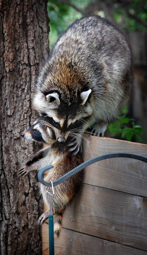 Raccoon Mother Moving Baby 2 - Austin TX Wildlife in the City Rarer daylight case of a sow moving her kit from one den to another.