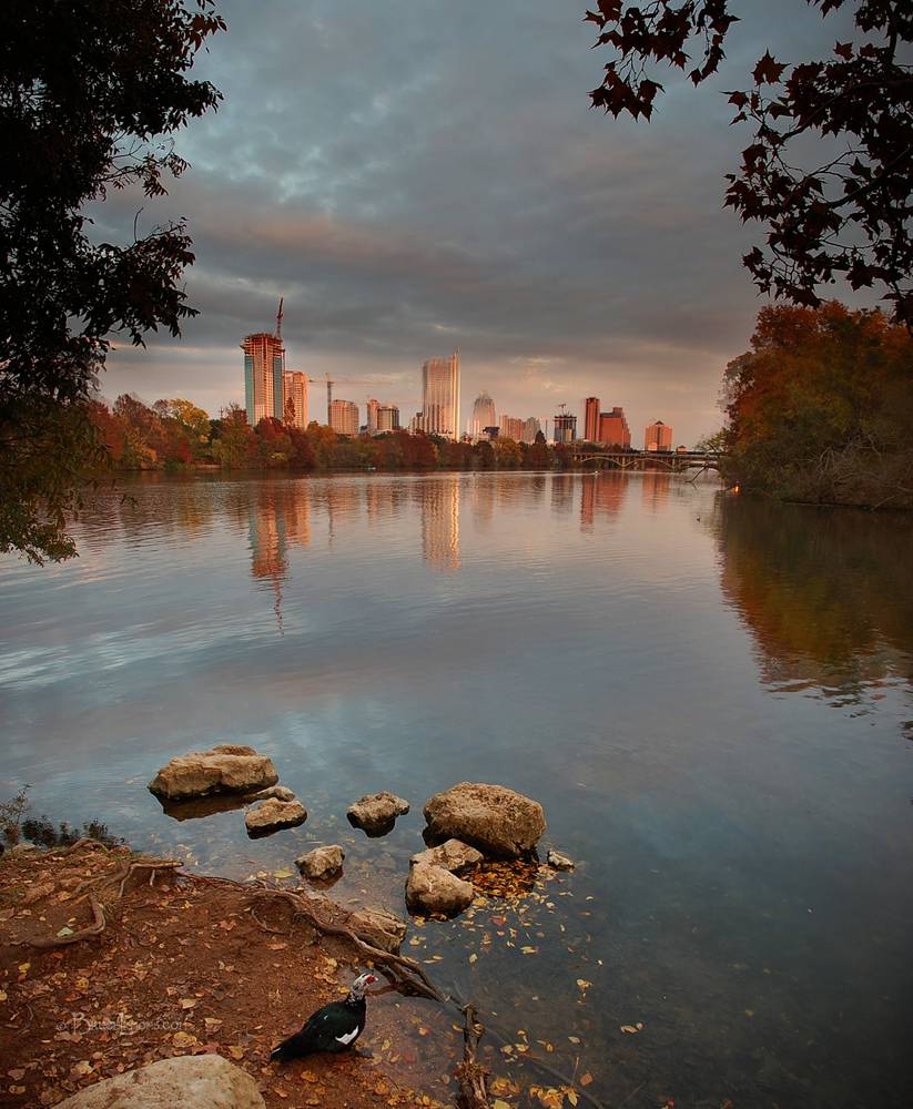 Downtown Skyline Sunrise from Lou Neff Point 3 - Lady Bird Lake - Austin -Texas.