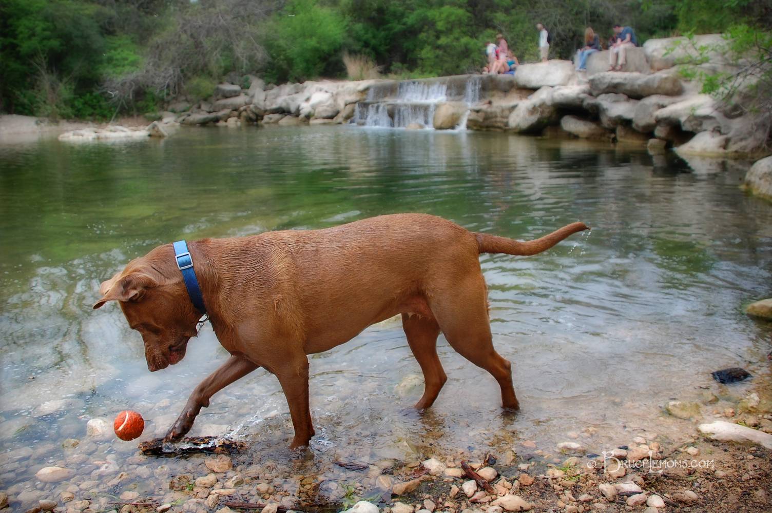 Dog at Horne's Falls - Barton Creek - Austin - Texas The Adventures of Belly the Dog - A Puppy's First Year