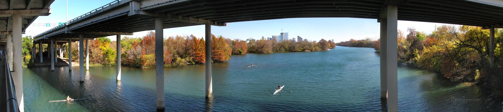 Lady Bird Lake Panorama from Mopac - Austin - Texas Lady Bird Lake panorama from the Mopac pedestrian bridge, with the downtown skyline in the distance. Lady Bird Lake, Austin, Texas.