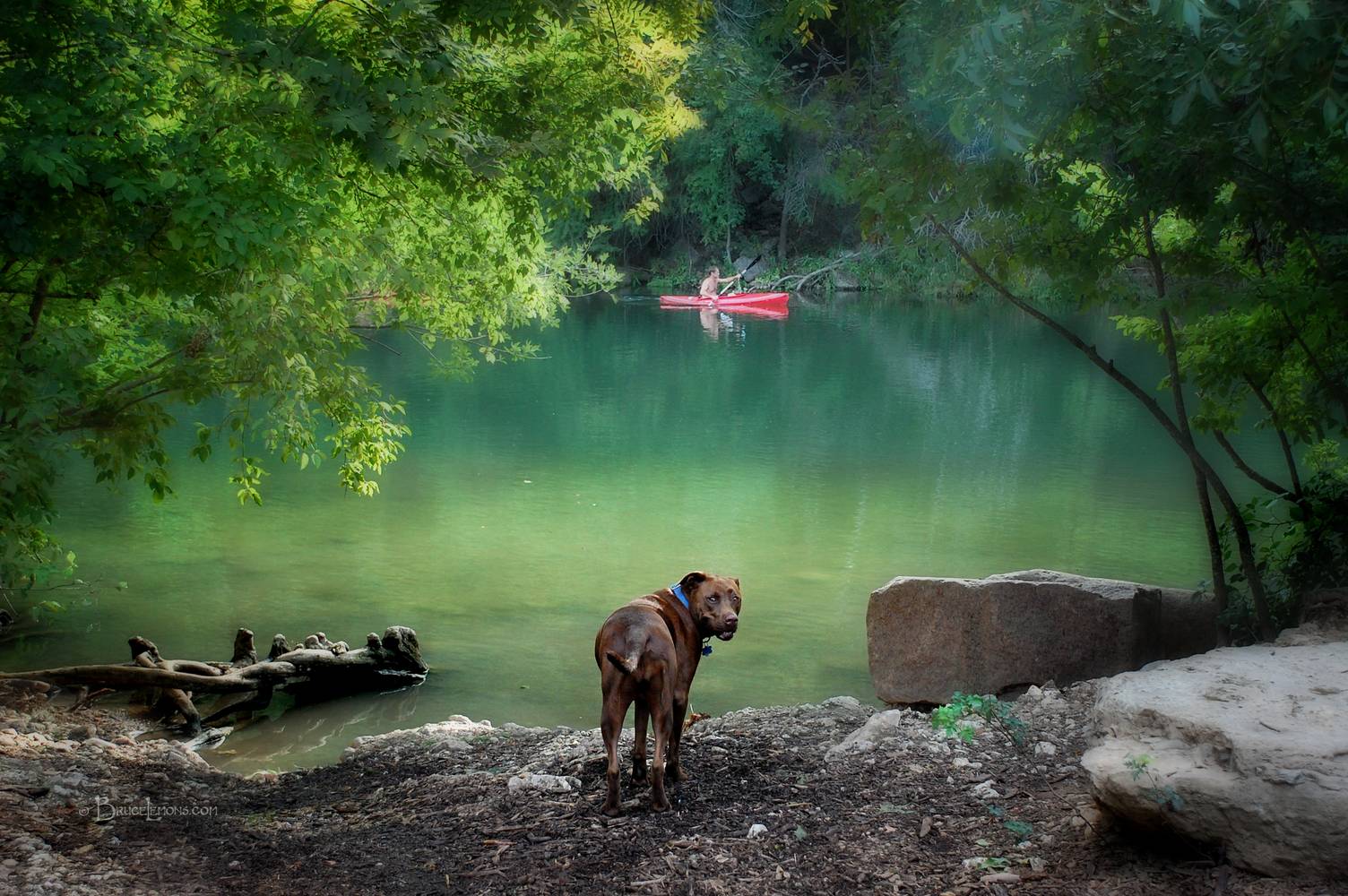 Dog and Kayaker at Red Bud Isle - Lady Bird Lake - Austin - Texas