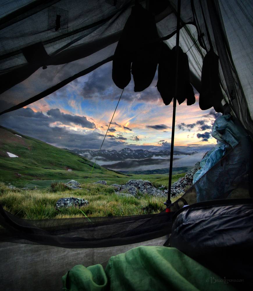 Sunset from Tent near Stoney Pass - Mile 393 of the Colorado Trail Sunset from tent near Stoney Pass. Colorado, Weminuche Wilderness, Stoney Pass. Colorado Trail mile 393.