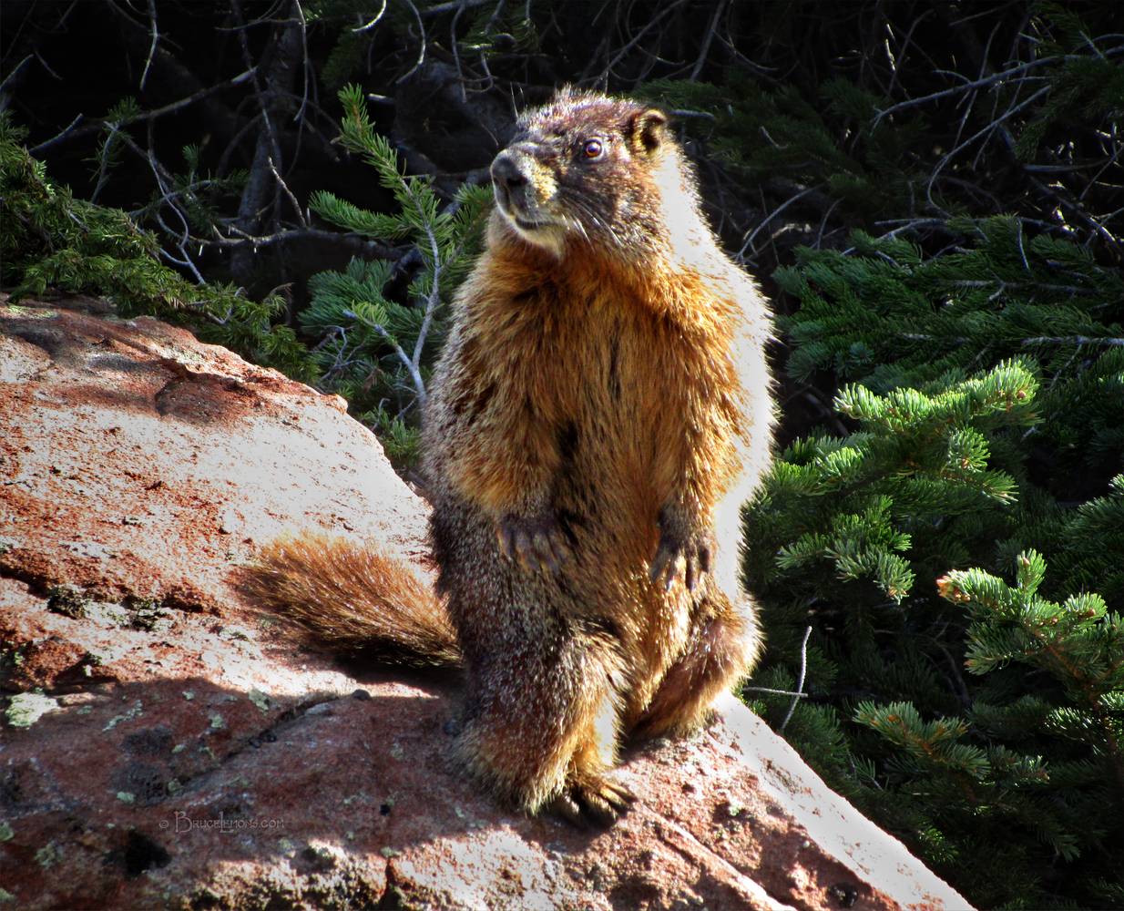 Marmot at St Kevin Lake - Off mile152 of the Colorado Trail Marmot standing upright at St Kevin Lake. Colorado, St Kevin Lake. Colorado Trail mile 152.