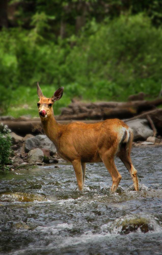 Mule Deer in Snowmass Creek Detail - Maroon Bells Wilderness - Colorado Mule Deer in Snowmass Creek. Colorado, White River National Forest, Maroon Bells Snowmass Wilderness, Aspen, Snowmass Creek.