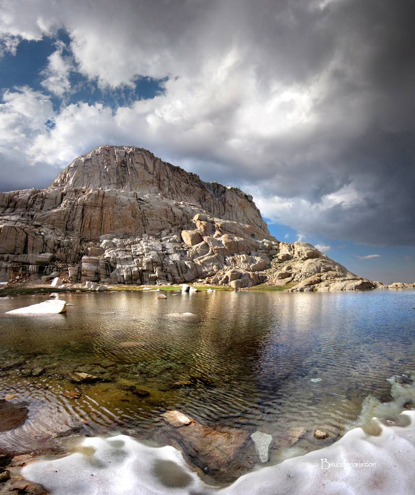 Wotans Throne Over Trail Camp Lake 2 - Mt Whitney Trail Looking ENE across Trail Camp Lake to Wotans Throne on the left. California, Sierra Nevada Mountains, John Muir Wilderness, Mt Whitney Trail, Trailcamp. John Muir Trail Mile 214.