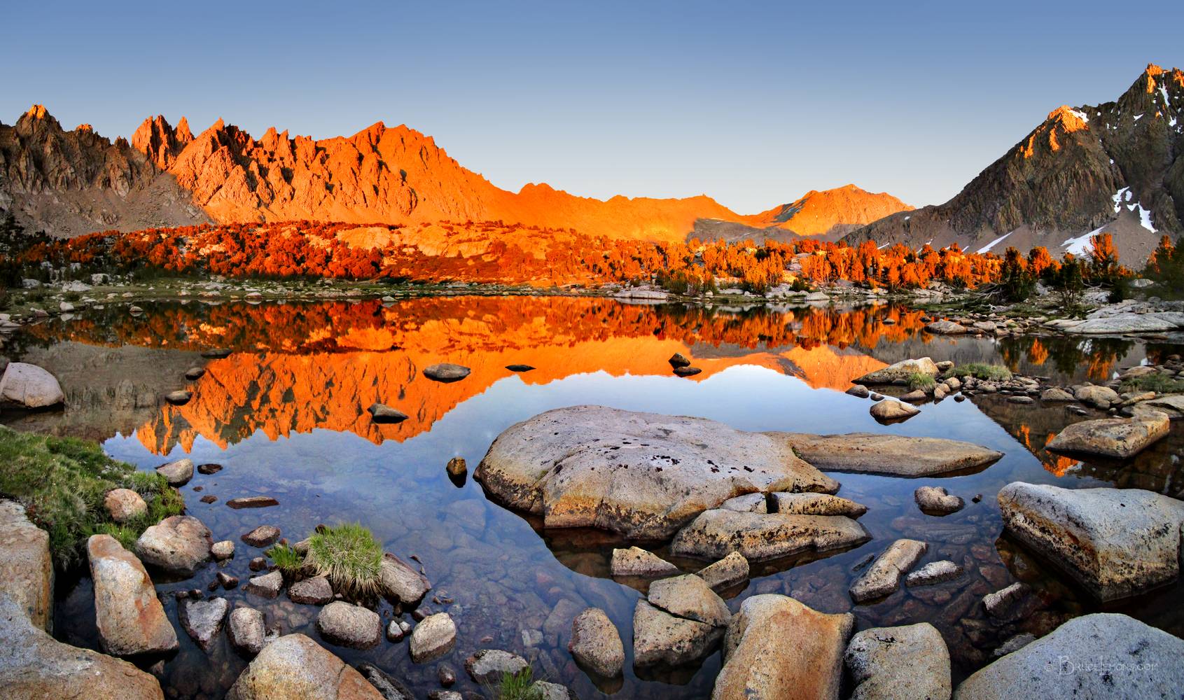 Sunset on Center Basin Crags over Lower Golden Bear Lake - Sierra