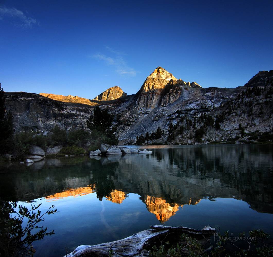 Sunset Alpenglow on Painted Lady at Upper Rae Lake - John Muir Trail Sunset alpenglow on Painted Lady at Upper Rae Lake. California, Sierra Nevada Mountains, Kings Canyon National Park, Rae Lakes. John Muir Trail Mile 176.