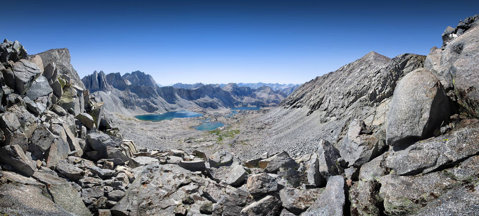 Amphitheater Pass Overlooking Amphitheater Lakes - Sierra Looking West from Amphitheater Pass over Amphitheater Lakes Basin. California, Sierra Nevada Mountains, Kings Canyon National Park, Wales Lake. Off the John Muir Trail near Mile 154.
