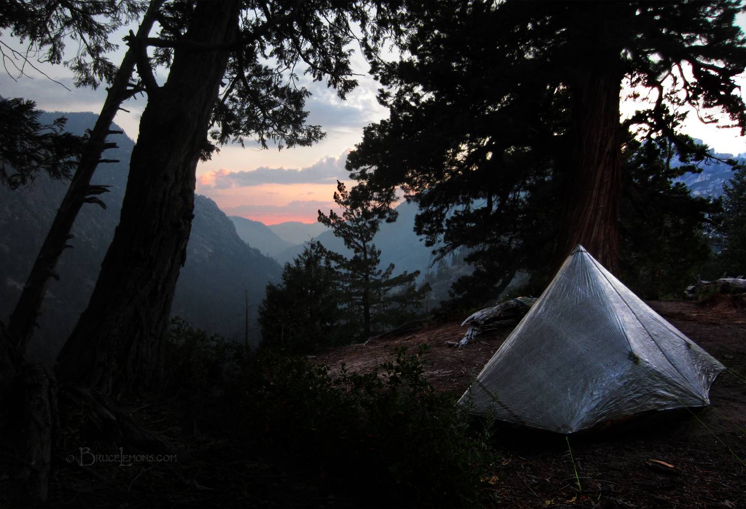 Iva Bell Hotsprings Sunset Camp - Sierra Sunset from campsite above Triple Spring at Iva Bell Hot Springs. California, Sierra Nevada Mountains, John Muir Wilderness, Iva Bell Hotsprings. Off the John Muir Trail near Mile 060.
