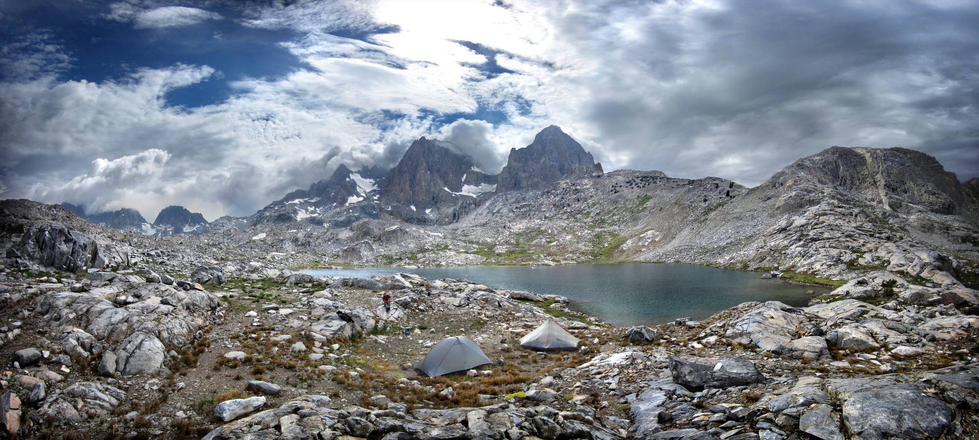 Campsite at Upper Nydiver Lake Under Mt Ritter and Banner Peak - Sierra