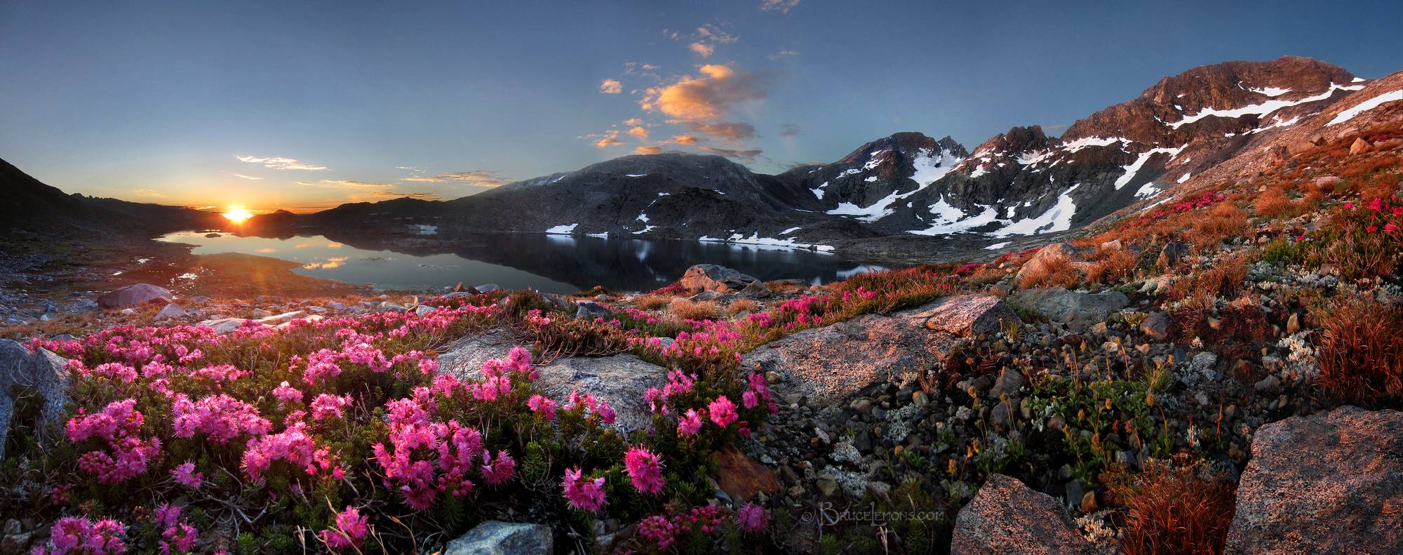Marie Lakes Sunrise on Wildflowers - Sierra
